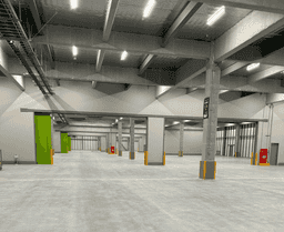 滋賀県湖南市石部北に位置する倉庫は、2023年竣工の地上4階建てで延べ床面積約4,100坪、高床式(床高1m)の常温保管対応施設としてスペース貸しと作業受託を組み合わせた利用が可能です。危険物保管は不可ですが、耐震・免震・制震構造により安全性が確保され、ドックレベラー付バースでウィング車や10t・4t・2t、トレーラー等の発着に対応し発着可能台数は14台、待機6台を確保しています。エレベーターや垂直搬送機を備え、入出庫や在庫管理、バンニング・デバンニング等の作業受託に適しており、カードキー・オートロック、事務所、OAフロア、男女別トイレ、屋外駐車場や4t~10t車向けの屋外待機場などの設備も整っています。最寄り駅から徒歩約20分、名神高速のICから車で約4kmとアクセスが良く、稼働時間は平日・土日祝ともに08:00–18:00(年末年始休業)です。
