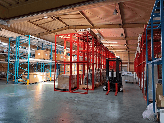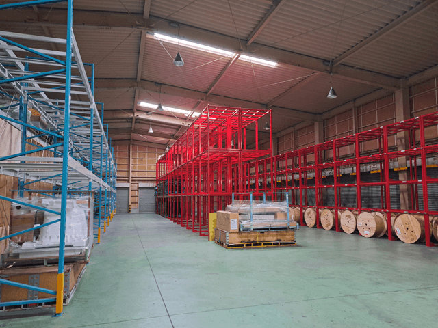 愛知県一宮市伝法寺にある倉庫は、1994年竣工の地上1階・平屋建てで延べ床面積325.2坪のスペース貸し物件です。床は低床で地面から約1mのプラットホームがあり、直角接車式バースで10tトラックの接車が可能なほか、ホームに接車しない場合でも敷地内でウィングを開けてフォークリフトによる荷役が行えます。常温対応で、防犯カメラ等のセキュリティ対策が施されており、平日・土曜は09:00〜18:00で稼働、祝日は事前連絡で対応、年末年始は休業です。名神高速道路のICから約0.5kmと車両アクセスに優れており、地域内物流や一時保管などの用途に適しています。