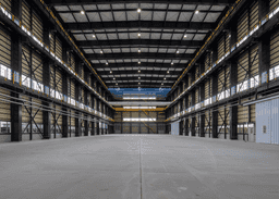 富山県射水市七美中野に立地する2020年竣工の平屋倉庫で、延べ床面積は約842坪(約2,786㎡)の低床仕様です。天井高は約23.85m、床荷重は1㎡あたり最大10tに設計され、地盤改良とほぼ全面に敷設した25mm厚の定盤により大型鋼構造物にも対応可能です。30t吊りクレーン2基(揚程最大20m)と4.8t吊り2基(揚程最大12m)を備え、スペース貸しと作業受託の提供が可能で危険物の保管はできません。湾岸沿いの立地で最寄り駅から車・バスで約15分、最寄り高速ICから約11km、直角接車のバースによりトレーラーや各種トラックの発着に対応し、待機・発着ともに約10台分の余裕があります。防犯カメラやカードキー、事務所、屋外駐車・待機場・資材置き場を備え、耐震・免振・制震構造および品質管理の認証がある点も企業利用の利点です。稼働は平日・土曜の08:00–18:00で日祝は休業、年末年始も休業となります。