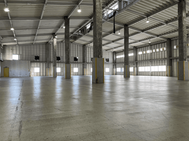 熊本県益城町惣領に位置する倉庫は2001年竣工の高床式(床高1m)で、スペース貸しによる提供、延べ床面積約2,200坪・地下3階建ての規模を持ち、常温保存に適した施設です。平日の8:00〜17:00に稼働し、土日祝は休業(年末年始も休業)となるため稼働時間を想定した運用設計が行いやすく、入出庫は待機・発着ともに5台まで対応可能なためトラック運行の調整がしやすい立地です。熊本駅からバスや車で約60分、九州自動車道の益城ICから約1kmと高速道路アクセスも良好で、スペース貸しの柔軟性により在庫変動に応じた増減が可能、地下構造と屋内保管で天候影響が少ないことから常温の一般貨物や資材の長短期保管、流通在庫の一括管理や物流業務の一部移管など実務的な用途に向いています。