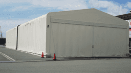 熊本県長洲町大字名石浜にある2017年竣工の低床平屋倉庫(延床148.5坪)は、工業地域の湾岸沿いで近隣に住宅がない立地です。地上1階の施設で、50t・70tのラフタークレーンや220tオールテレーンクレーン、13t・7t・3tのフォークリフトを備え、プラットホームはないもののクレーンやフォークリフトによる荷卸しが可能で、4t・10tトラックや重量物トレーラーベースでの荷扱いにも対応します。直角接車式のバースは発着・待機とも6台までで、屋外待機場や屋外資材置き場、屋外野積み、監視カメラ等の設備が整っており、スペース貸しと作業受託の形態で入出庫業務やトラック手配、バンニング・デバンニング等のサービス提供が可能です。稼働は平日8:00–17:00(休憩12:00–13:00)、土日祝は基本休業で、お盆や年末年始の休業期間があります。最寄りの高速ICは南関(九州自動車道)から約24kmです。