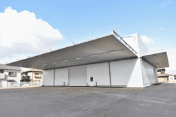 岡山県倉敷市南畝に位置する2022年竣工の倉庫は、地上1階・延べ床250坪の低床構造で、1階天井高7m・床荷重1.5t/㎡に対応しています。常温管理でスペース貸しと作業受託を組み合わせた提供が可能で、入出庫・在庫管理・棚卸し・バンニング/デバンニングなどの業務に対応します。直角接車・平行接車に対応し、普通車・軽トラックから2t/4t/10tトラック、ウィング車、トレーラー、鉄道コンテナ、混載便・宅配便まで発着が可能で、待機3台・発着1台の運用が可能です。検査済証があり、防犯カメラや事務所、男女別トイレ、休憩室、屋外駐車場・待機場・資材置き場・野積みスペースなどの設備を備え、逆ネステナ、ハンドリフト、カウンターフォーク等の機材利用も想定されています。稼働は平日・土曜08:00〜17:00(日曜・祝日休業)、盆休みと年末年始の休業期間があります。最寄りは水島駅から車・バスで約5分、最寄高速IC(水島、瀬戸中央自動車道)から約6kmです。