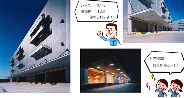 千葉県浦安市千鳥に位置する本倉庫は2006年竣工の地上5階、延べ床面積約7,800坪の高床(床高約1m)仕様で、準工業地域に立地しています。常温管理を基本としつつ4・5階は空調対応が可能で、危険物の保管は不可ですがスペース貸しに加えて作業受託にも対応します。貨物用エレベーター1機、垂直搬送機6機、乗用エレベーター2機を備え、直角接車式バースとドックレベラーにより10トン車やトレーラー、鉄道コンテナまで発着可能で、発着想定は22台、待機2台です。事務所・男女別トイレ・屋外駐車場などのアメニティが整い、検査済証取得の耐震・免振・制震構造のため安全性が高く、24時間365日稼働が可能で、最寄り駅から車で約6分、湾岸線ICから約6kmの利便性を備えています。なお約5,000坪は2025年2月まで短期使用中です。